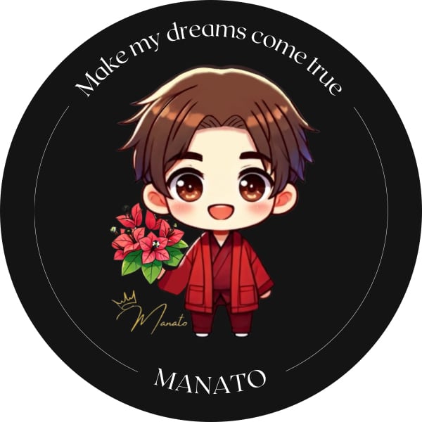 Make my dream com trueフレーズとブーゲンビリアの花を持ったMANATOシール♪